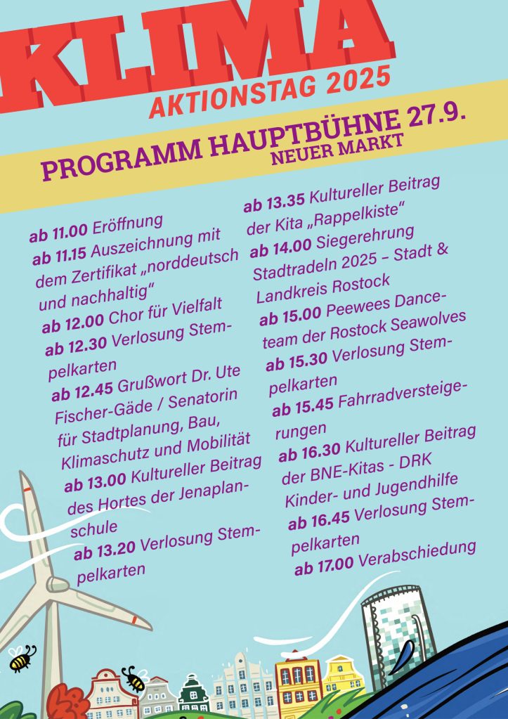 Die Auszeichnung reiht sich ein in das Motto des Klimaaktionstages am 27.9.2025 in Rostock: „Frischer Wind – fairer Wandel“. Die Ausgezeichneten stehen für Veränderungen. Mit dem Klima-Aktionstag setzen wir uns gemeinsam dafür ein, die UN-Ziele für nachhaltige Entwicklung umzusetzen. Sie bilden das Kernstück für die Agenda 2030, die grundlegend dazu beitragen soll, den weltweiten wirtschaftlichen Fortschritt im Einklang mit sozialer Gerechtigkeit und im Rahmen der ökologischen Grenzen der Erde zu gestalten.